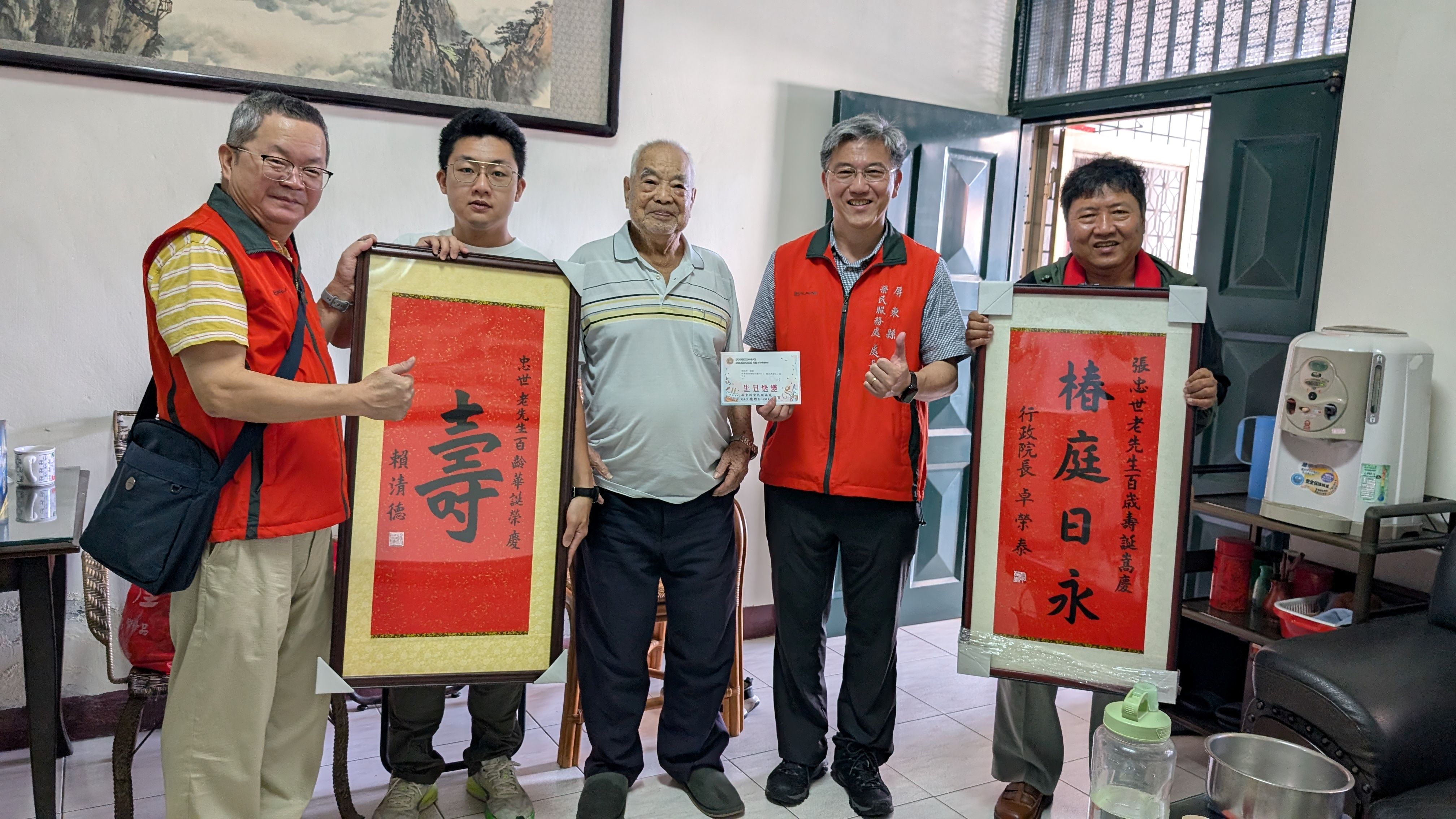 重陽節前夕,屏東縣榮民服務處處長王德維特別走訪慰問百歲榮民,表達政府對高齡榮民長輩的關懷與敬意。首先,王處長親赴張爺爺府上,祝賀其百歲嵩壽,除親致賀詞外,並代表總統及行政院院長,轉贈壽屏與營養品,傳達國家最高領導人的關懷與祝福。 在張爺爺溫馨的家中,處長與壽星及家屬話家常、敘舊情,長輩精神矍鑠、談笑風生,現場氣氛溫馨融洽,洋溢著濃厚的節慶與敬老情懷。王處長表示,榮民前輩為國家付出一生,值此重陽敬老之際,更應表達最崇高的敬意與祝福。 隨後,處長一行轉往探視另一位百歲榮民劉爺爺,同樣致贈營養品並致上重陽節祝賀。劉爺爺對政府的關心深表感激,並感性表示雖年事已高,依然感受到社會的溫暖與尊重。 屏東縣榮服處持續秉持「服務照顧、溫馨關懷」的精神,積極落實高齡榮民慰問關懷工作,讓年長榮民感受到政府與社會的尊重與溫情,也呼籲社會大眾一同關心長者,實踐敬老愛老的傳統美德。