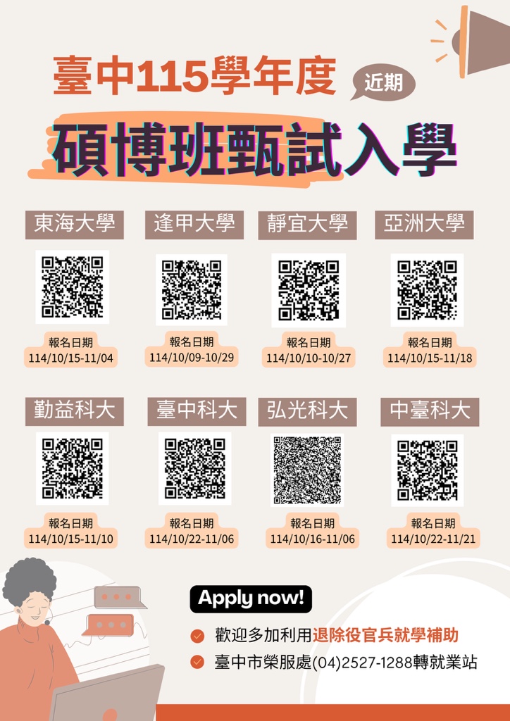 臺中市115 學年度碩博班甄試入學近期招生資訊