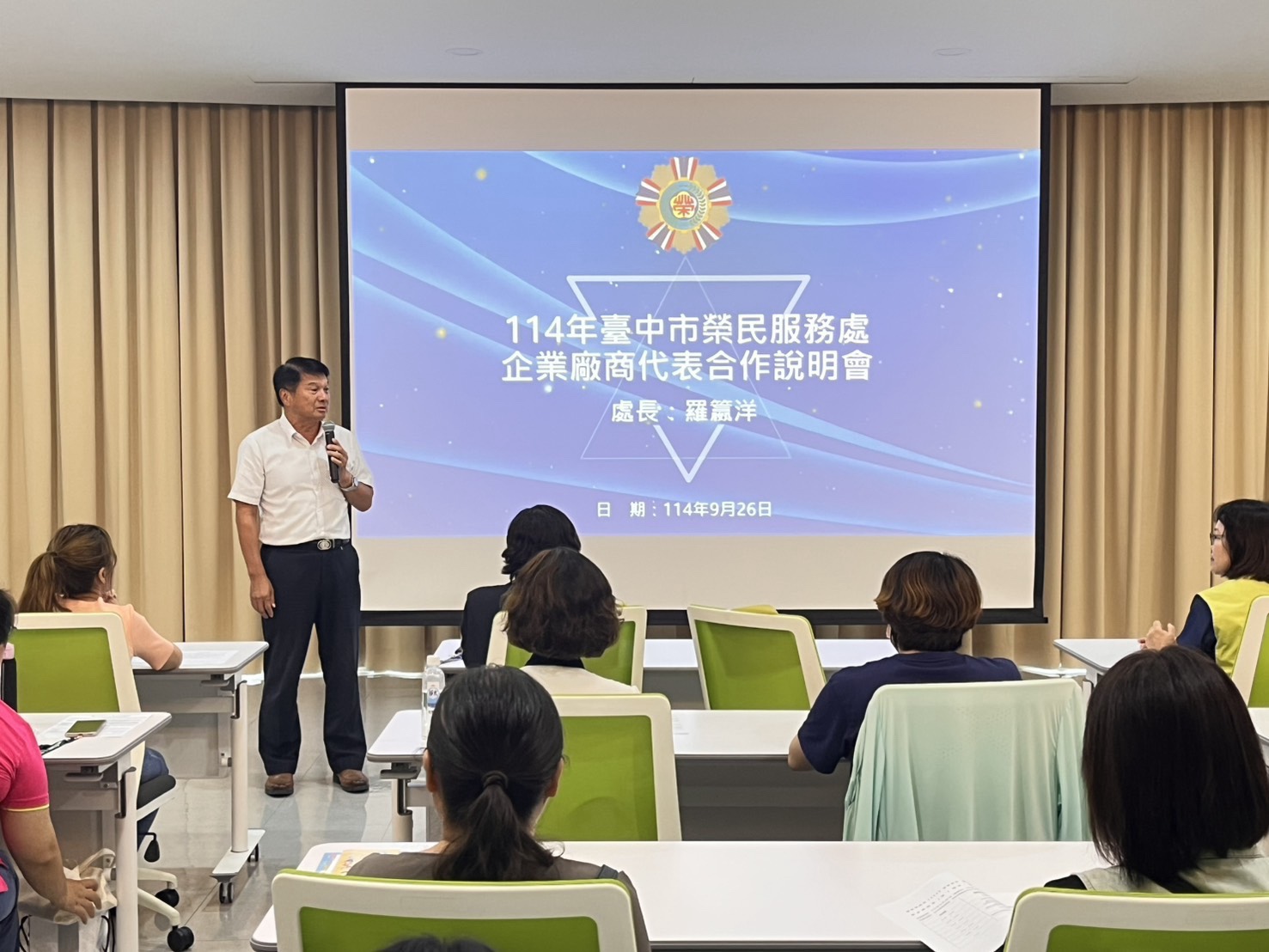 為提升就業服務效能,強化公部門與地方優質產業就業資源之連結,臺中市榮民服務處於今(26)日下午假臺中軟體園區鼎新電腦會議室,與臺中市就業服務處共同舉辦「114年企業廠商代表合作說明會」。此次活動邀請台中精機、禾登豐精密科技、台氟科技、翔鑫科技、川岳機械、台邑餐飲、環電股份有限公司等52家在地優質企業,約60餘位企業負責人及人資主管出席,共同探討「促進就業資源共享」、「運用心理學分析員工溝通與領導技巧」,以及說明重要勞工政策,並進行經驗分享與座談交流。 臺中市榮服處羅籝洋處長致詞時,除感謝臺中市政府勞工局團隊長期支持職缺開發外,也對企業協助退除役官兵的職場銜接表達誠摯謝意,並強調輔導會為鼓勵企業積極聘用志願役退除役官兵,訂有就業獎勵實施計畫,凡雇用人數達一定比例且成效卓越者,得向榮服處提出申請,經輔導會評核後核發獎勵金,藉此深化與企業合作,創造雙贏就業局面;此外,在說明會中,謝秀芬副處長以「誠信互廉,公私雙贏」為題進行企業誠信宣導,以及播放《蔥花麵包的滋味》宣導影片,鼓勵與會廠商落實企業誠信治理政策,期許與民間企業雙方都能誠信相待,良性互動。 本次說明會內容涵蓋退除役官兵就學、就業及職訓各項輔導措施,並邀請企業代表分享實務經驗與公部門就業資源運用心得,利用座談廣納業主寶貴意見,強化雙方交流互動,現場發言踴躍,討論熱烈,深獲與會企業高度肯定與讚譽。