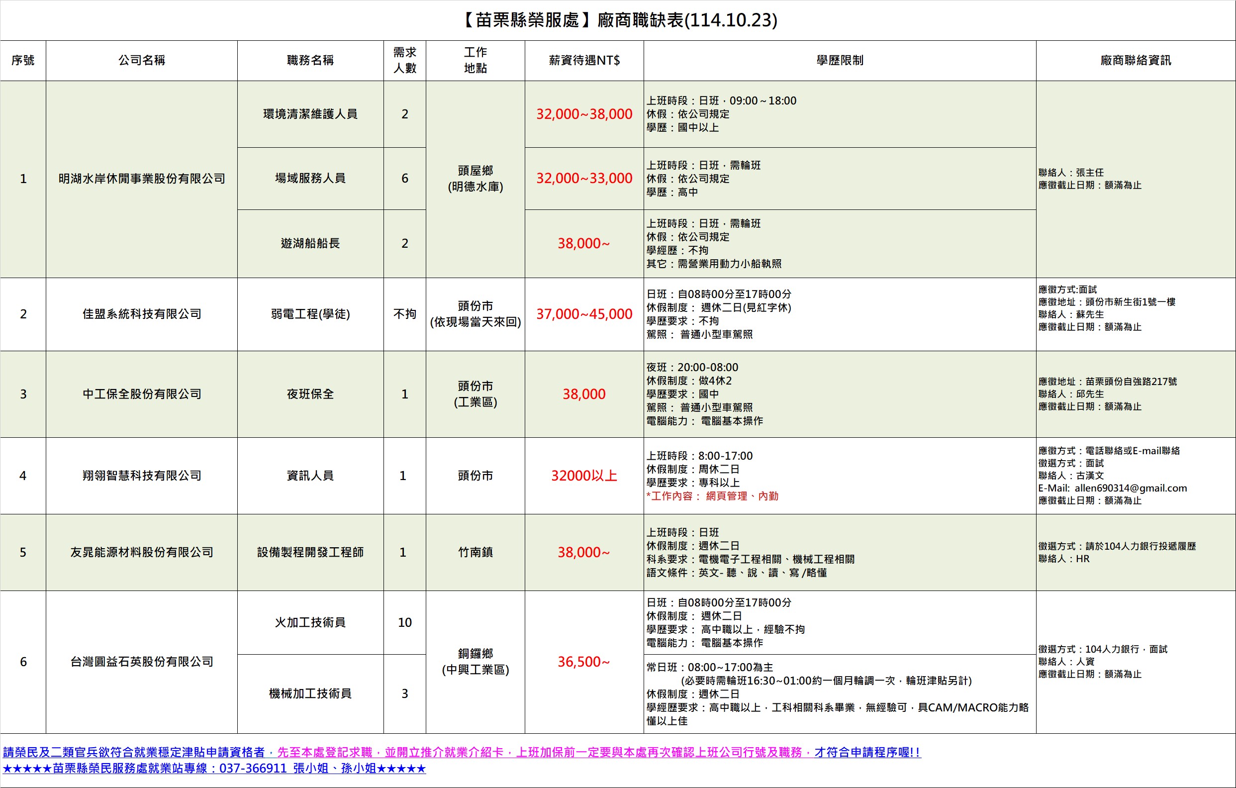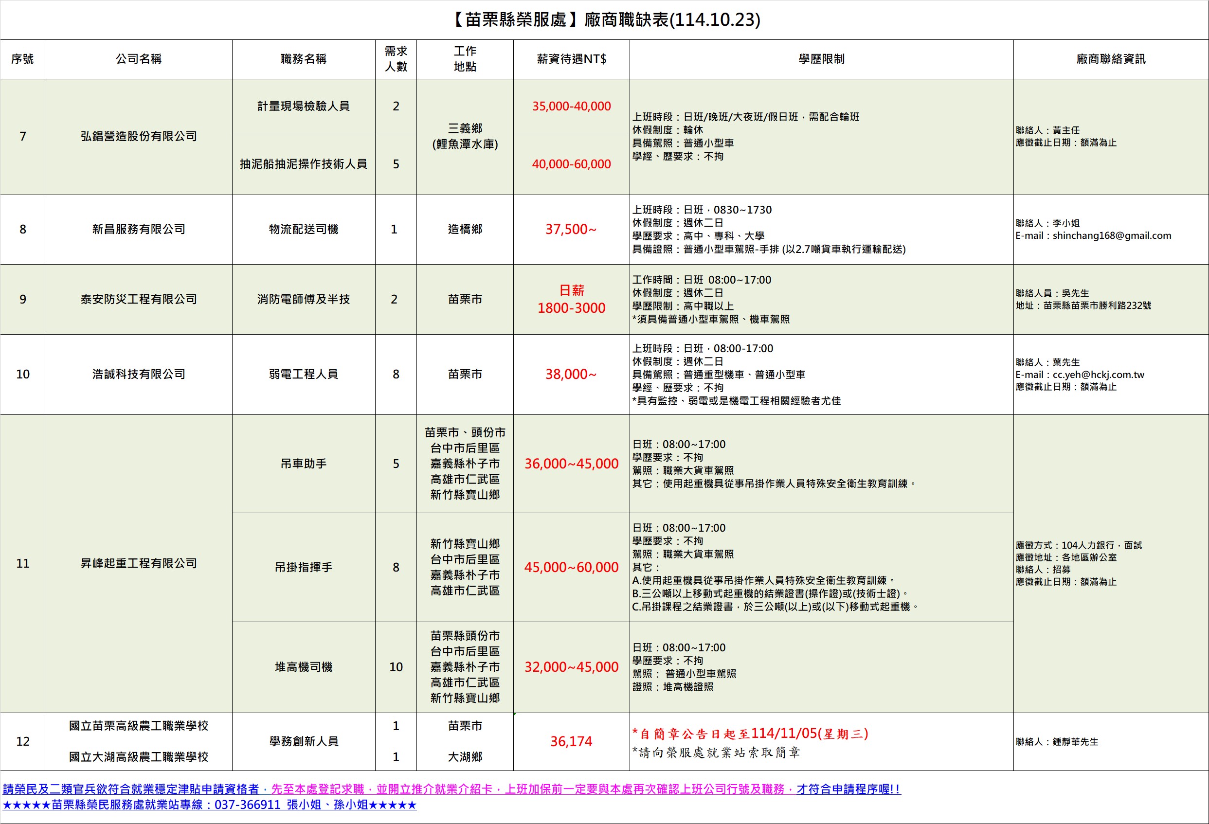 | 苗栗縣榮服處 廠商職缺表 1141023.pdf | 114-10-22 | 7 |