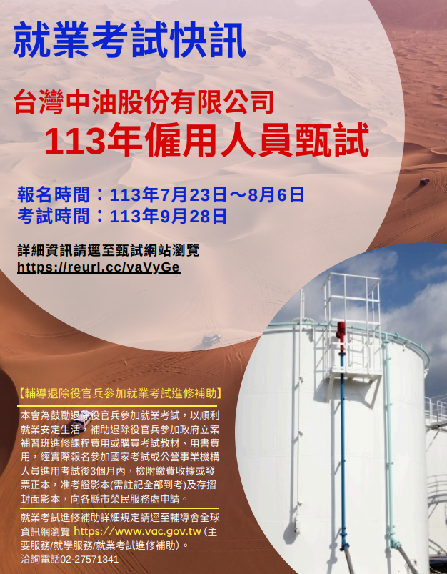 就業考試資訊-台灣中油股份有限公司113年僱用人員甄試