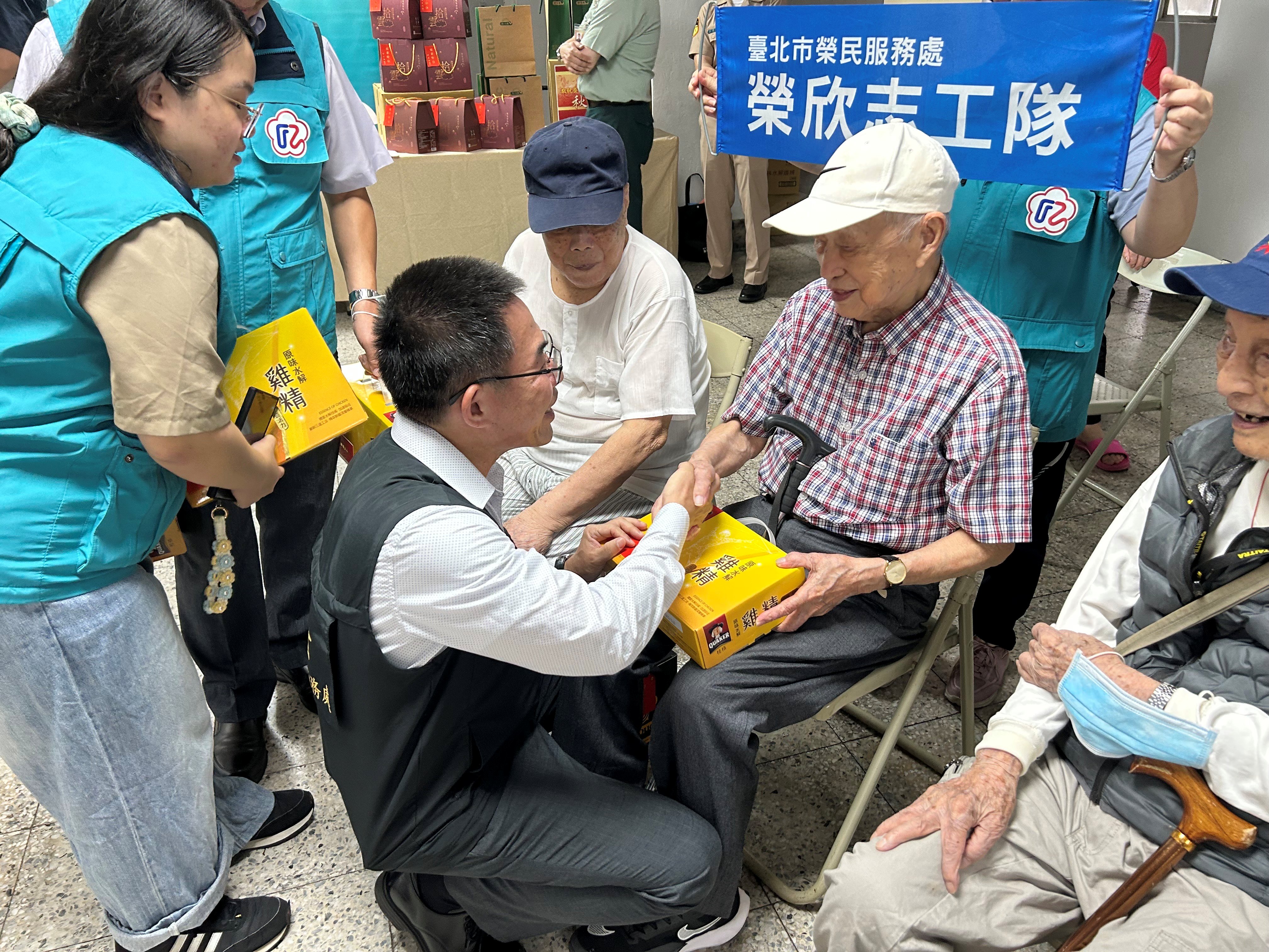 隨著114年中秋佳節將至,為轉達輔導會對退伍榮民的敬意與關懷,臺北市榮民服務處黃信仁處長今(26)日偕同臺北市政府兵役局林春來副局長及國防部代表等一行人,前往大我新舍、大我新莊及大我山莊等國軍單身退員宿舍訪視榮民及眷屬,並致贈桂格水解雞精禮盒,轉達輔導會嚴主任委員對榮民的深切關懷之意。 大我退舍會長楊振雲伯伯今年已高齡九十二歲,仍身體強健精神昂揚,並因夫妻相處融洽,於今年度獲頒績優幸福家庭獎,堪稱夫妻典範。會長並熱心與大家分享夫妻相處之道,為現場增添不少溫馨與歡笑。活動期間,黃信仁處長親自將禮盒送到每位榮民伯伯手中,並親切關懷他們的日常起居與健康情況,榮民們也紛紛表達感謝,並對中秋節期間仍持續進行關懷活動表示感動。過程中並宣導,因應行政院「普發萬元」,詐騙不法份子已蠢蠢欲動,政府不會發「簡訊」或「電子郵件」通知領錢登錄,也不會電話要求至「ATM或網銀操作轉帳」。榮民伯伯與阿姨們紛紛感謝榮服處的細心提醒,並對退輔會及榮服處給予高度肯定與感謝。 座落於信義區的大我退舍歷史悠久、住戶眾多,臺北市榮服處長期落實關懷訪視、生活協助與社福資源連結,並推廣16所榮家優美環境與專業照顧團隊,鼓勵長輩入住安養;亦向長輩說明「就醫綠色通道」措施,及自114年9月1日起,不論就業狀況或軍階別,只要持有榮民證或義士證,至臺北榮總及所屬分院就醫時,健保部分負擔將由輔導會全額補助,讓榮民朋友就醫更加安心、便利。榮服處將持續在未來推動更多元服務與貼心關懷,陪伴榮民共度佳節,讓他們在團圓氛圍中感受退輔會與榮服處的溫情。