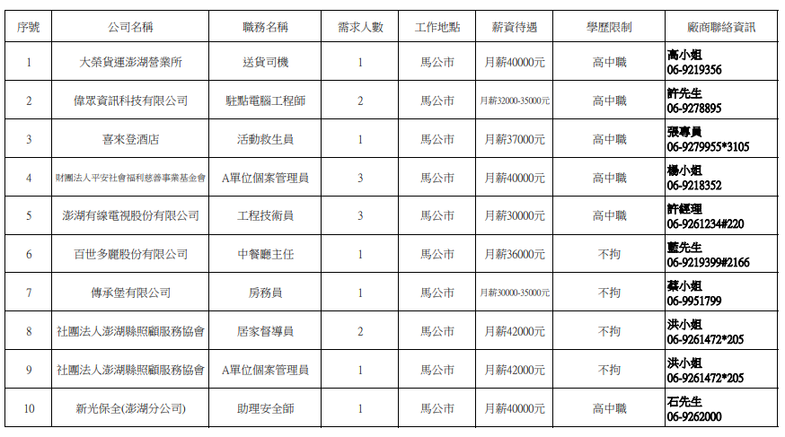 發布日期:114-10-27 資料來源:澎湖縣榮民服務處 【澎湖縣榮服處】廠商職缺表(114.10.27) 附件下載 檔案名稱 更新日期 下載次數 【澎湖縣榮服處】廠商職缺表(114.10.27).pdf 114-10-27 5