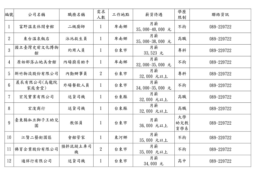 發布日期:115-02-24 資料來源:臺東縣榮民服務處 【臺東榮服處】廠商職缺表_115.02.24 附件下載 檔案名稱 更新日期 下載次數 【臺東榮服處】廠商職缺表_115.02.24.pdf 115-02-24 6