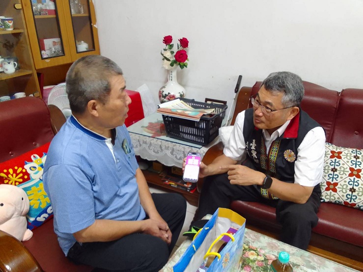 臺東縣榮服處訪慰榮民發放物資及宣導普發萬元政策