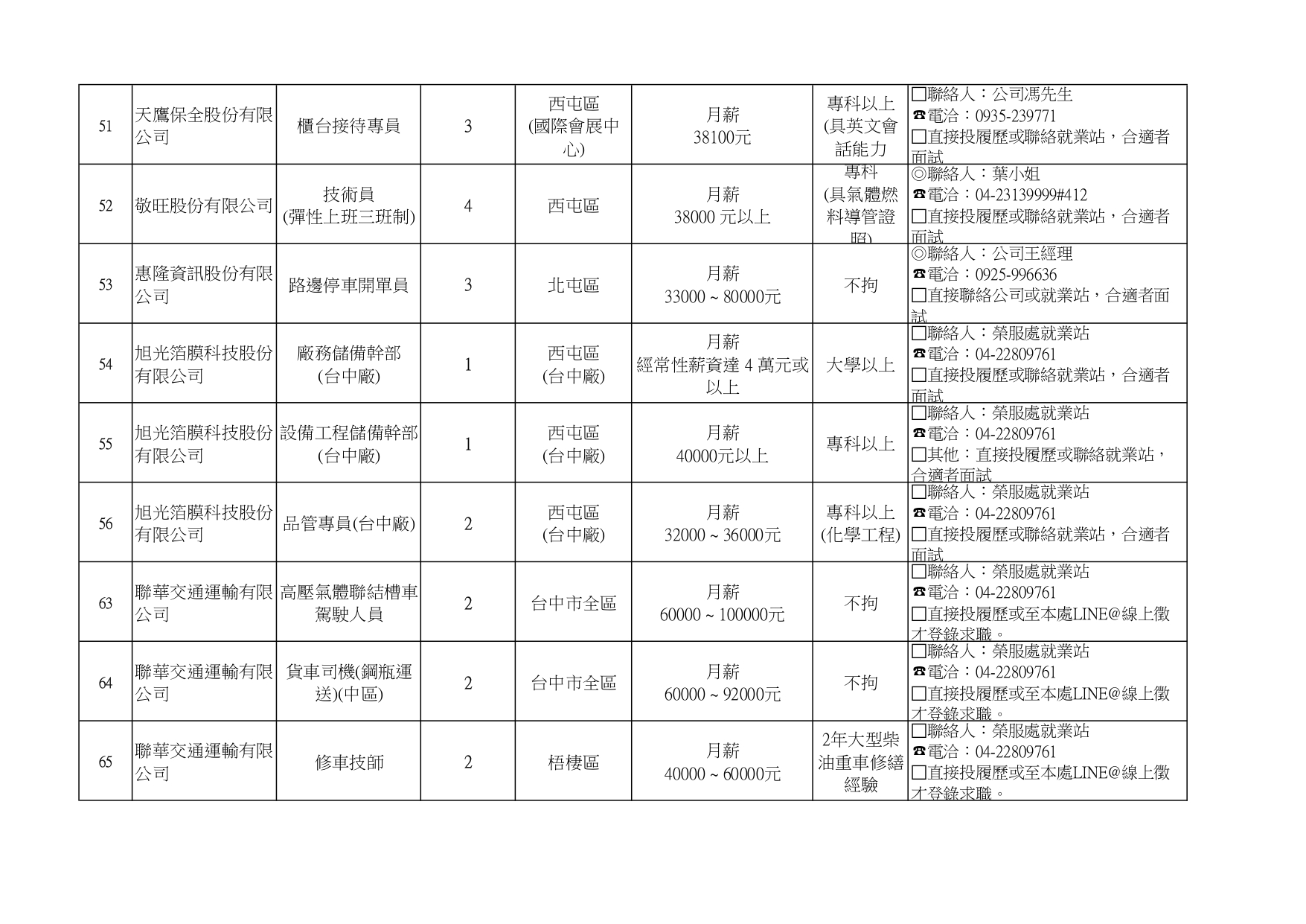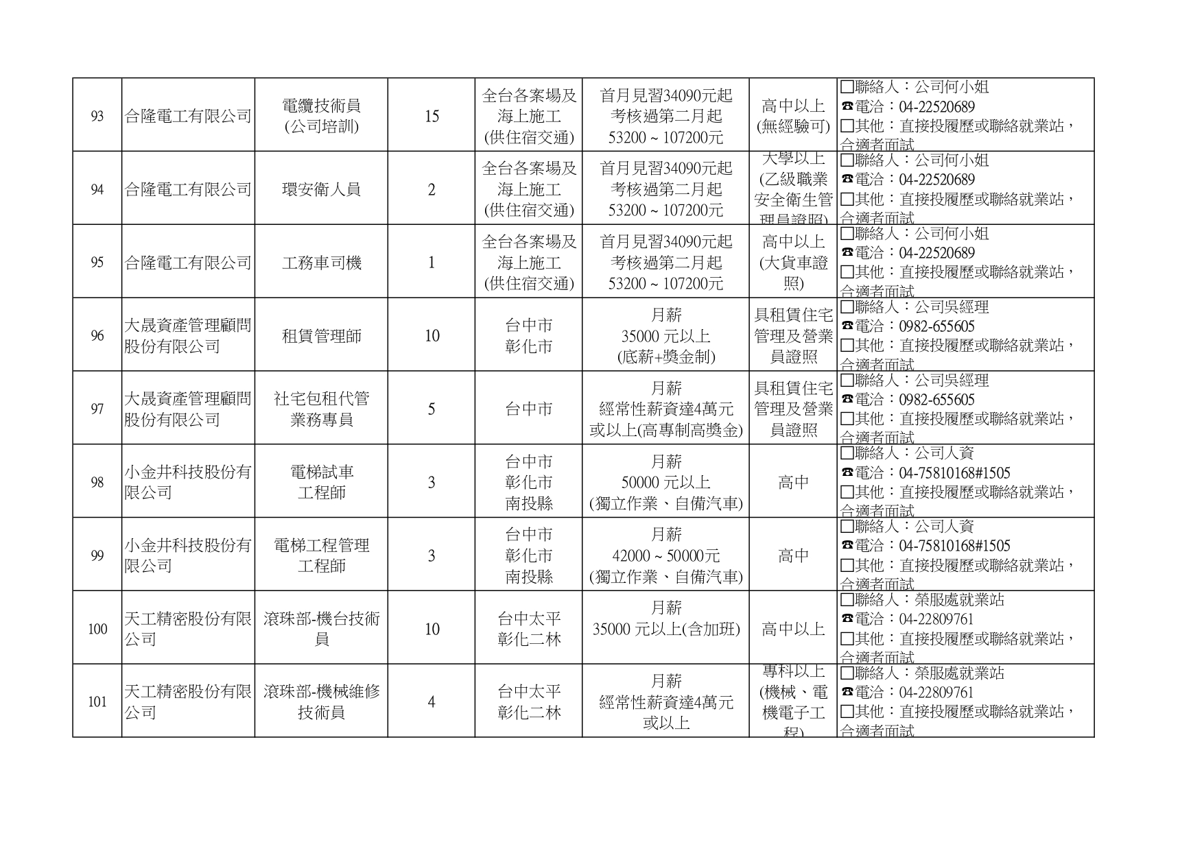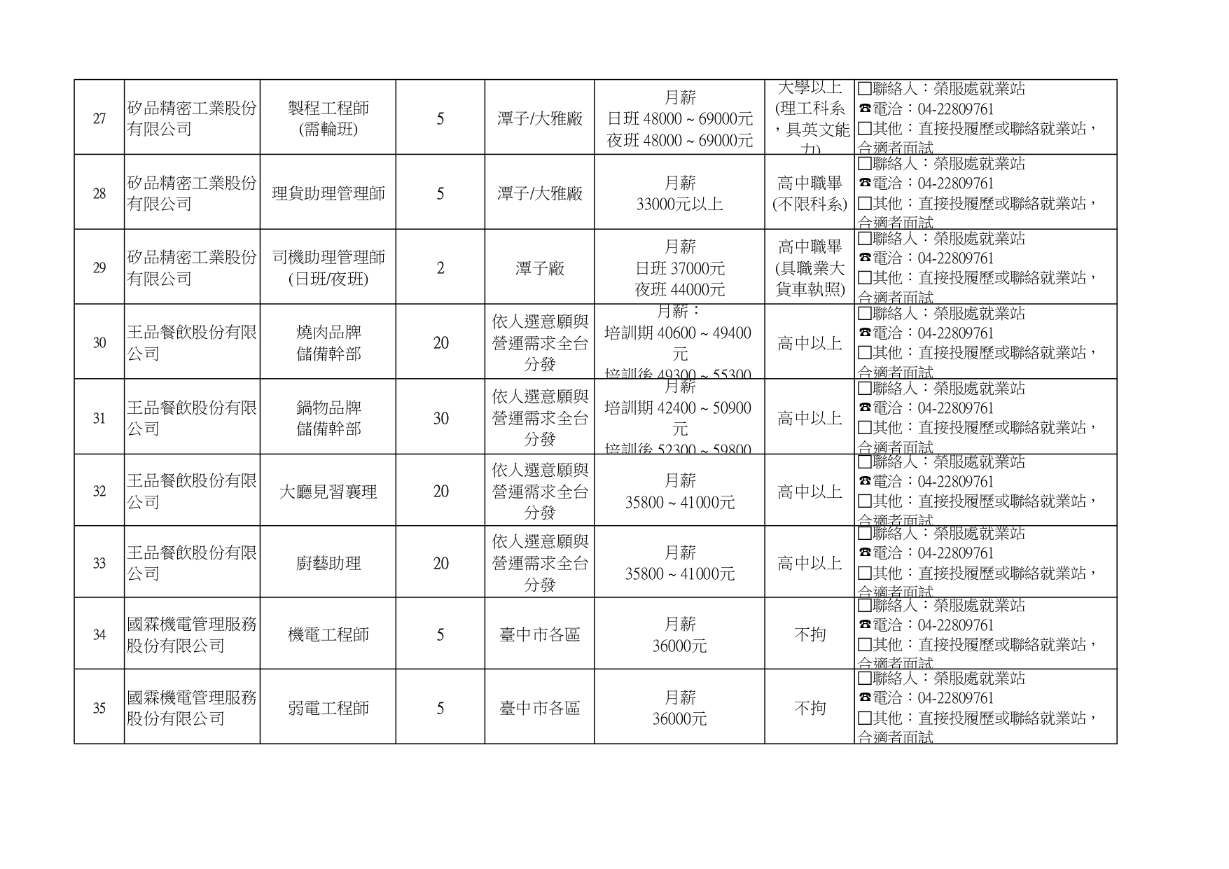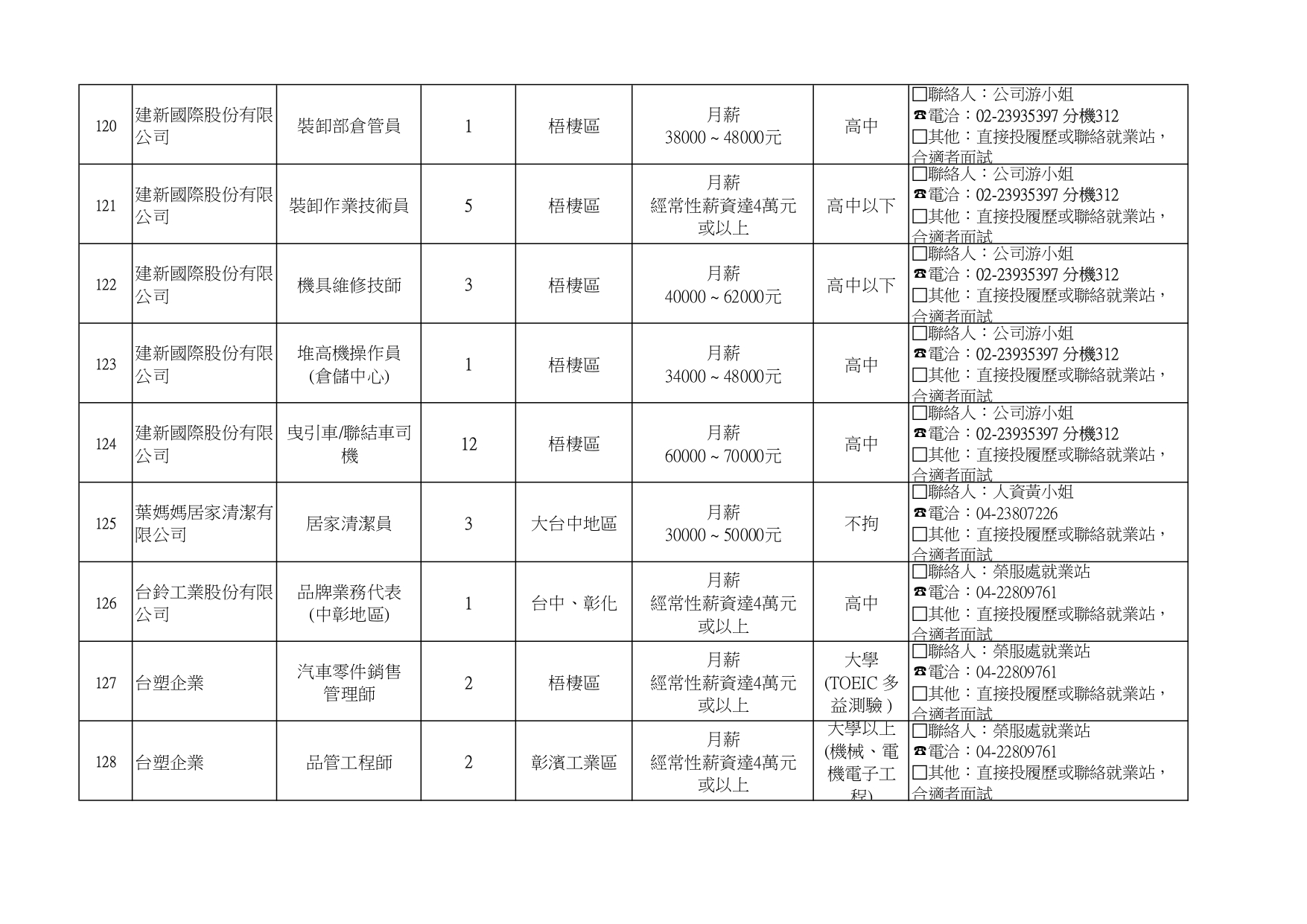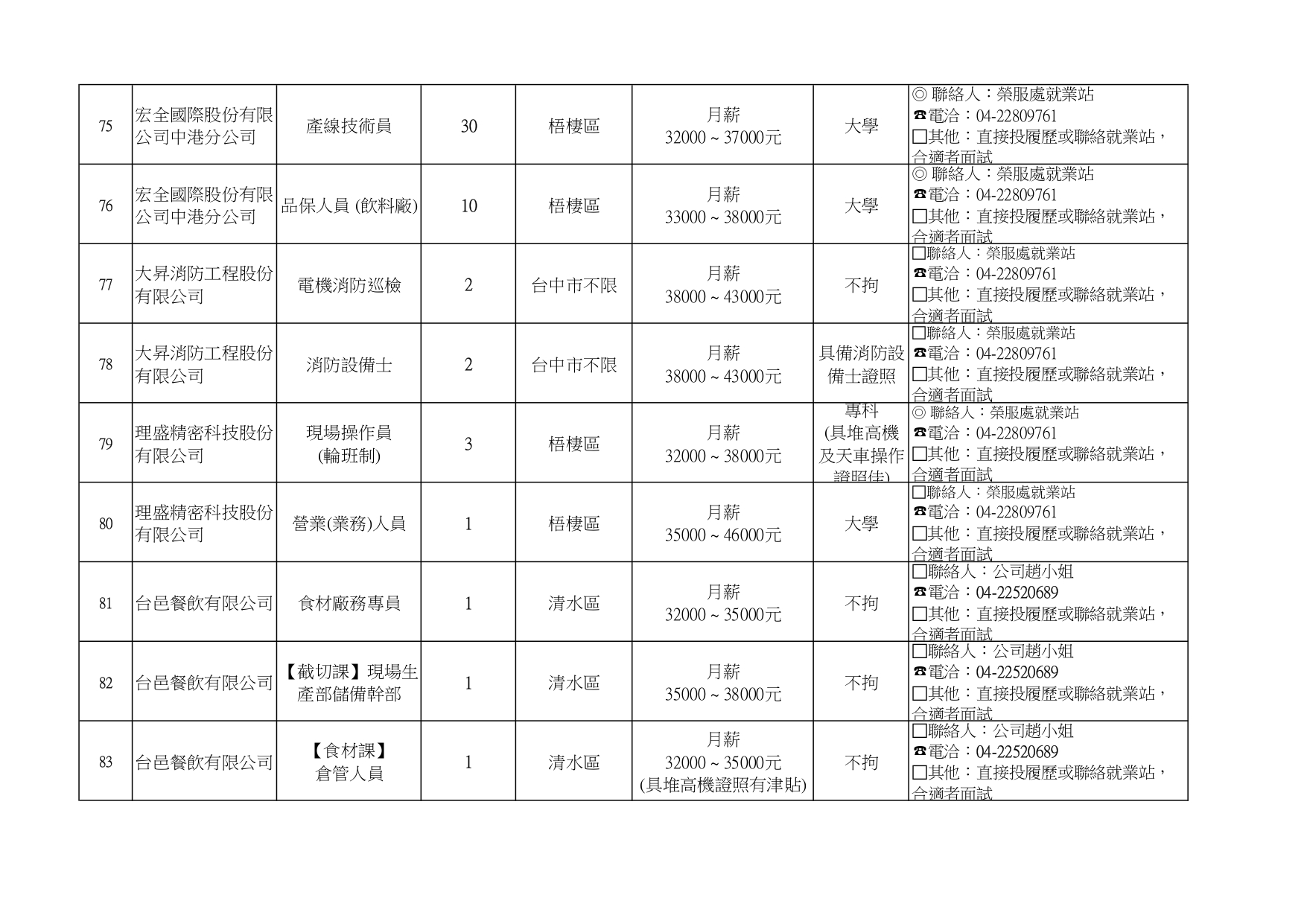 臺中市榮民服務處就業巿場快報(114. 12.23 最新廠商職缺表)