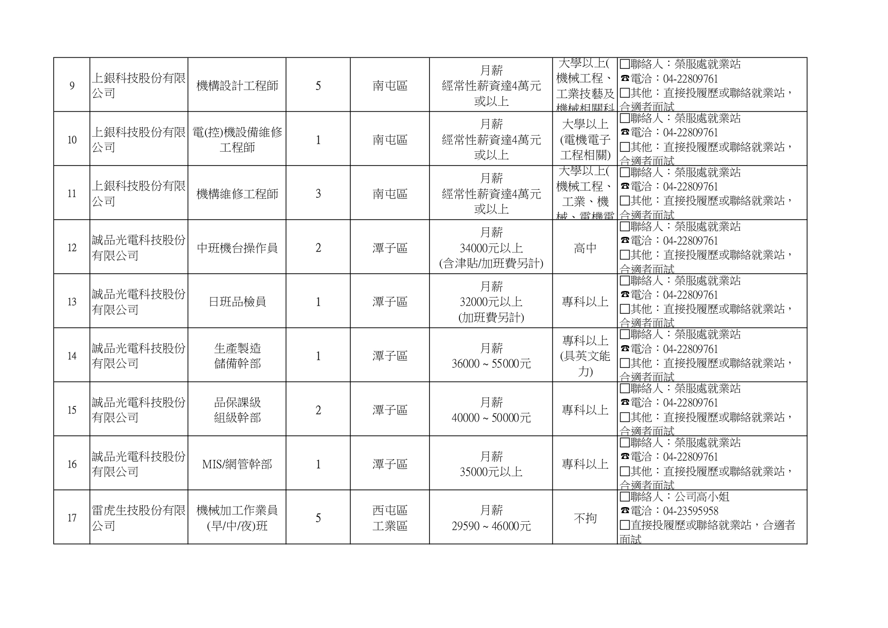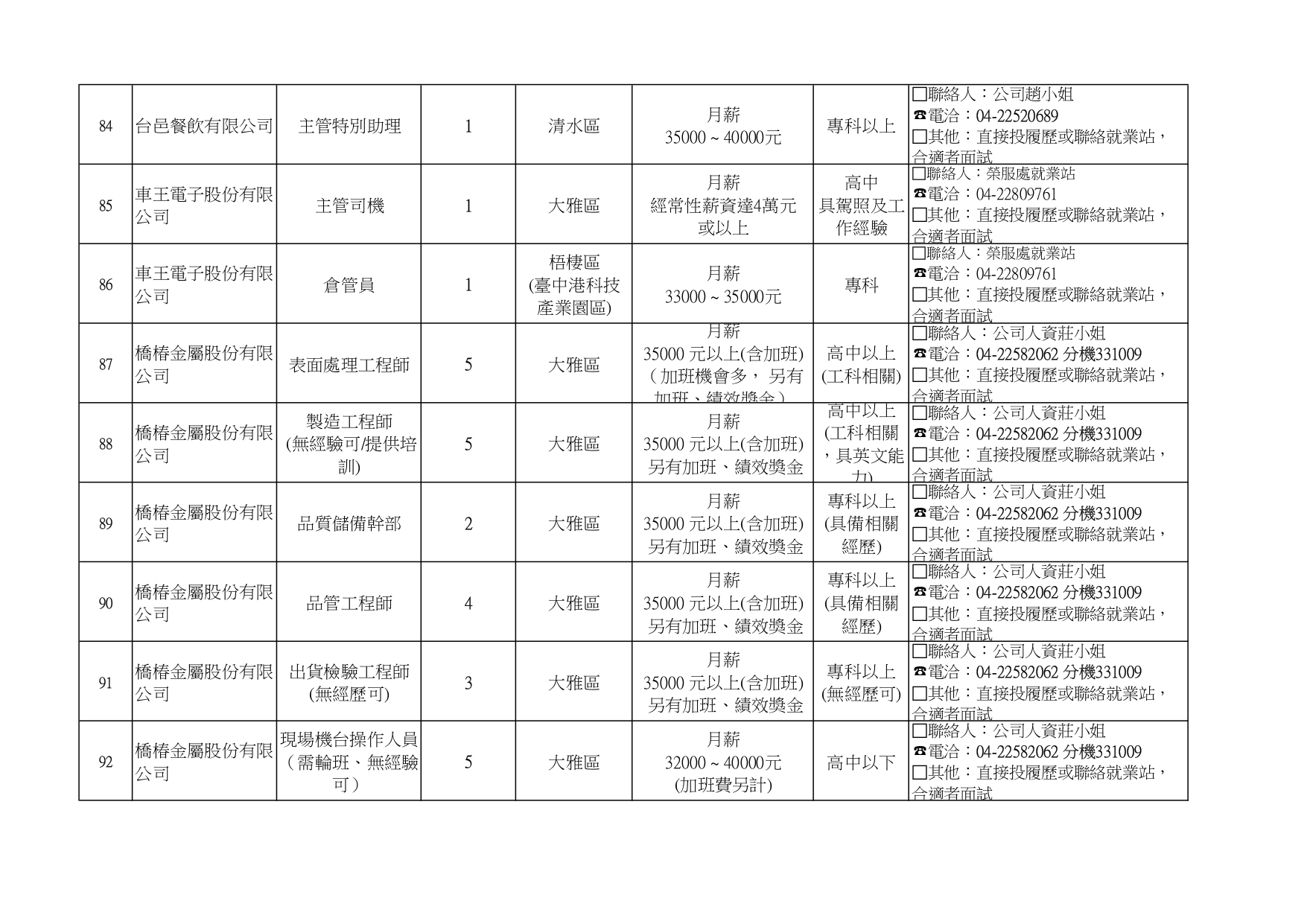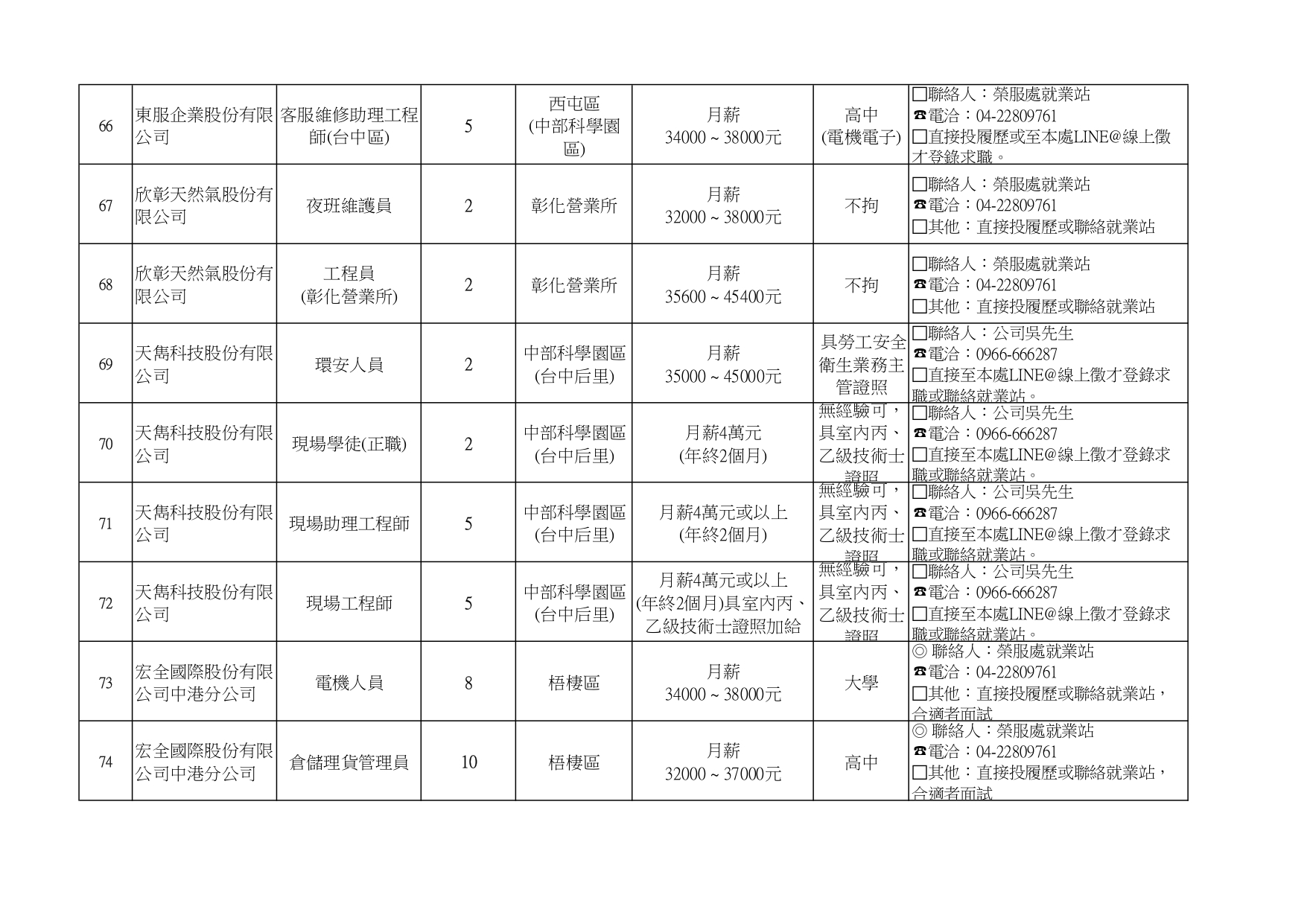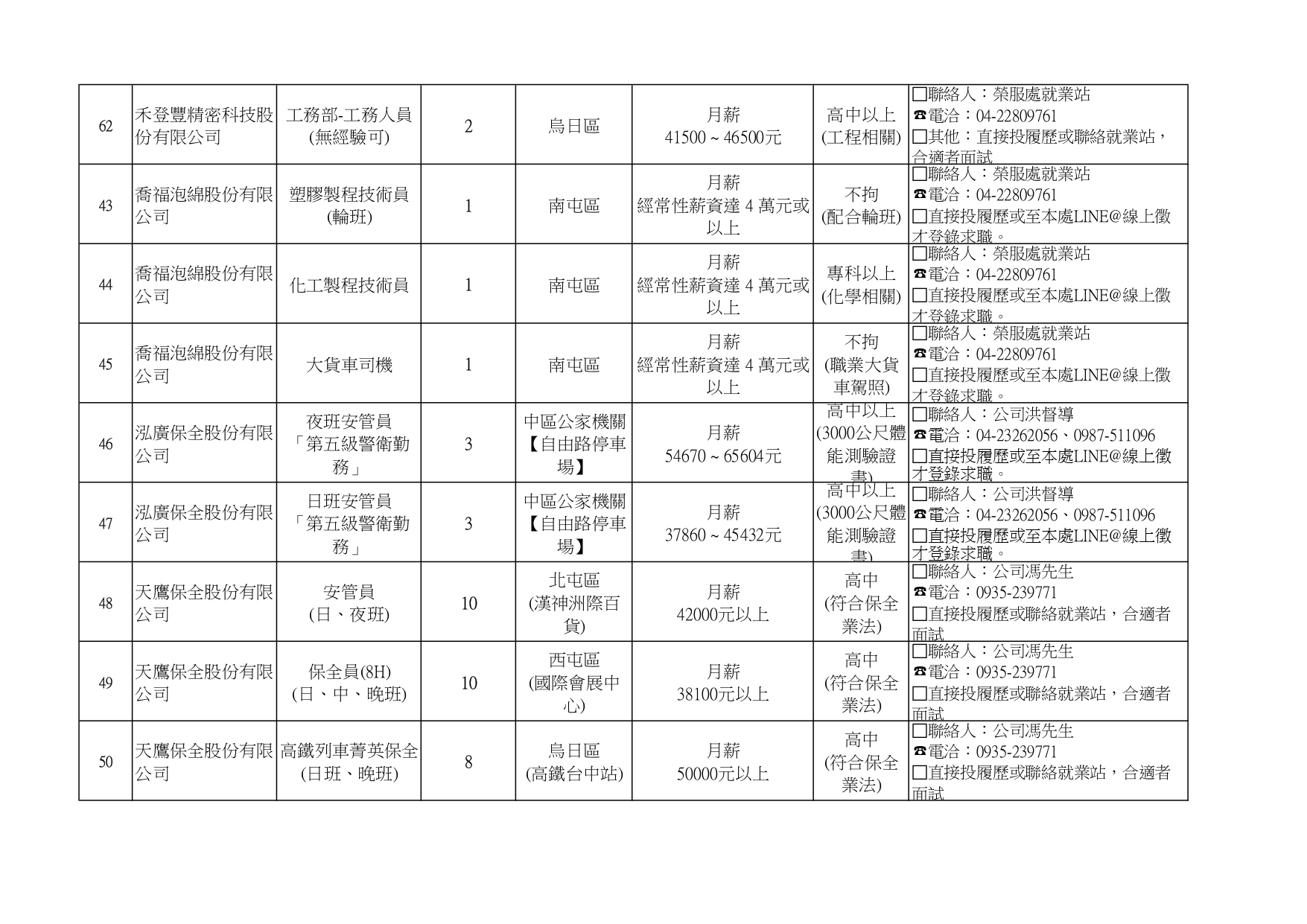 臺中市榮民服務處就業巿場快報(114. 12.23 最新廠商職缺表)