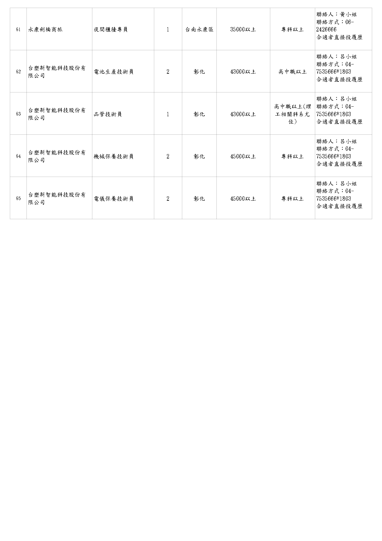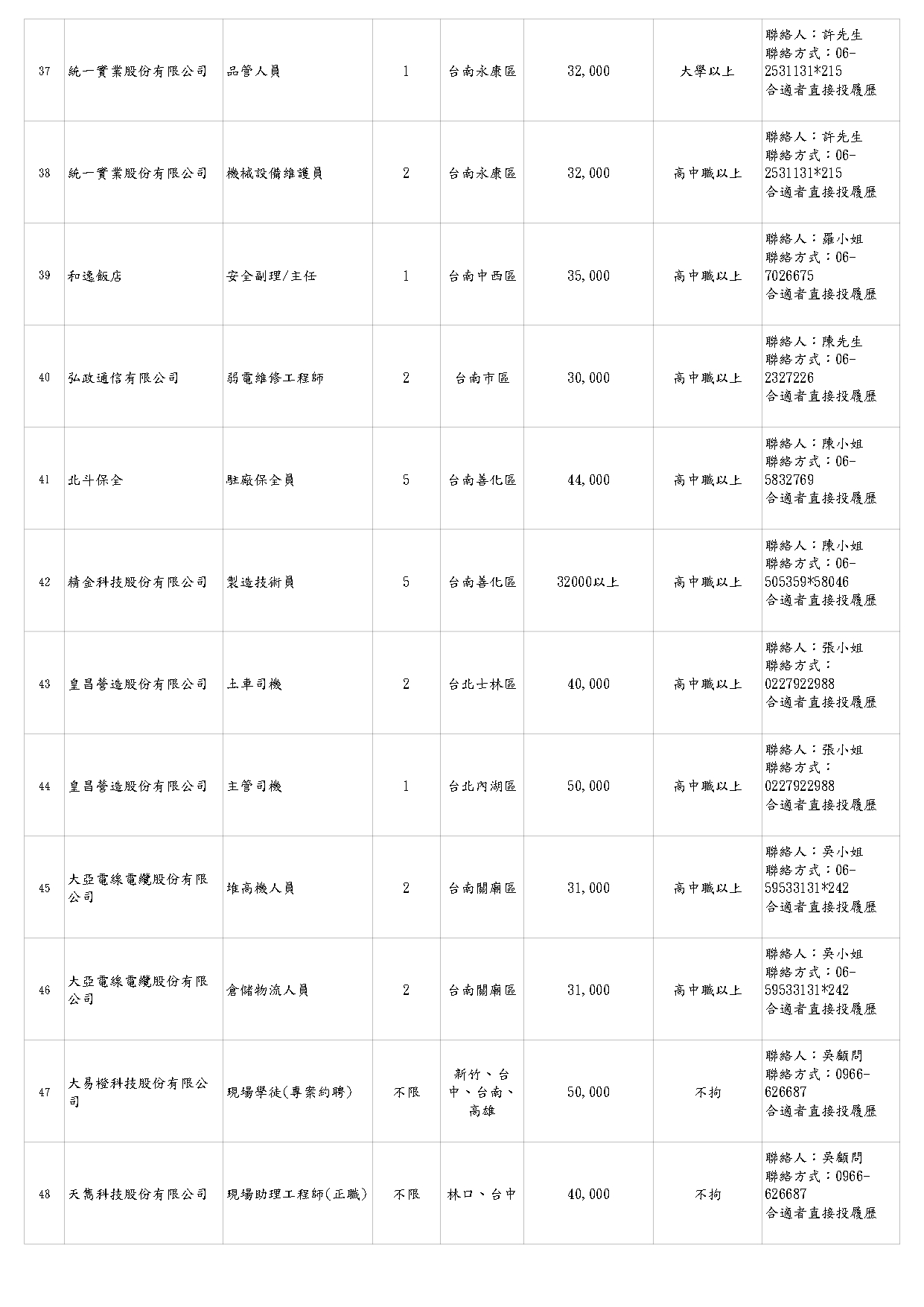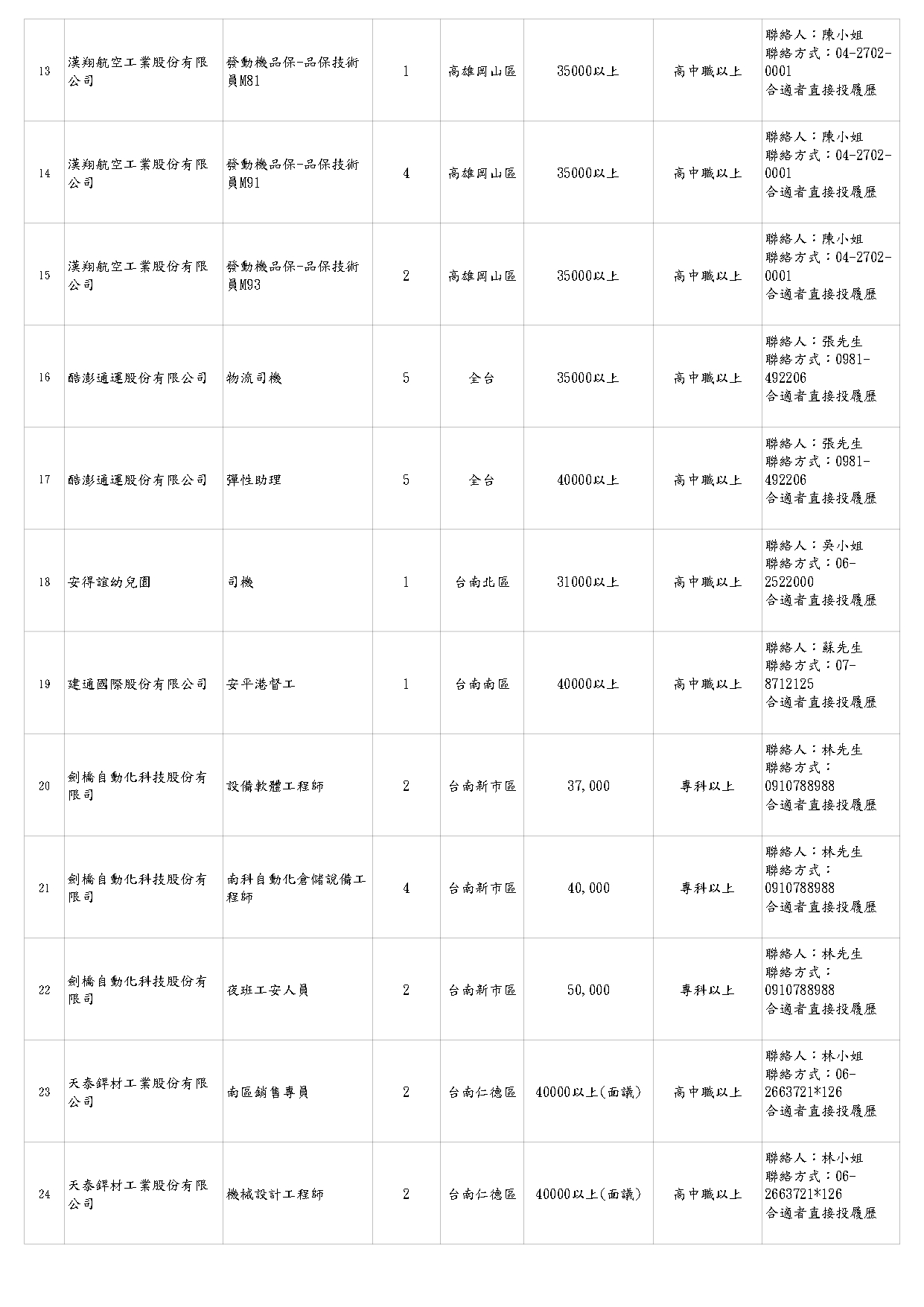 【臺南市榮服處】廠商職缺表(115.01.09)