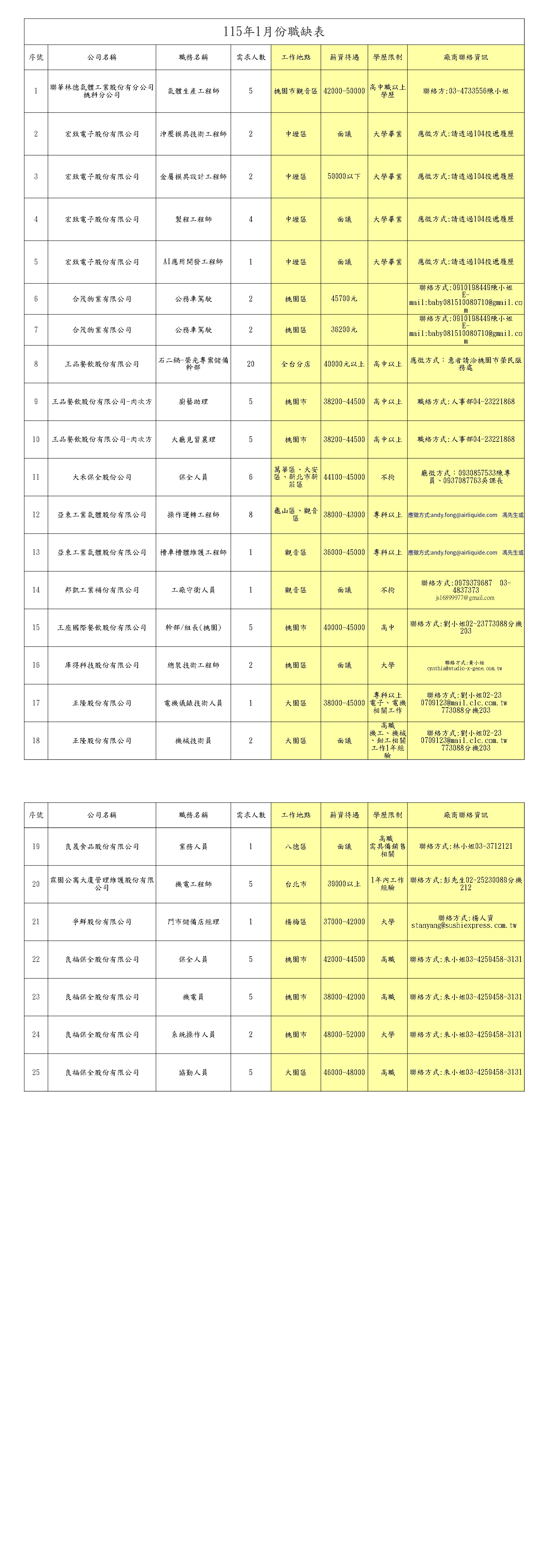 【桃園市榮服處】廠商職缺表(115.01.01)