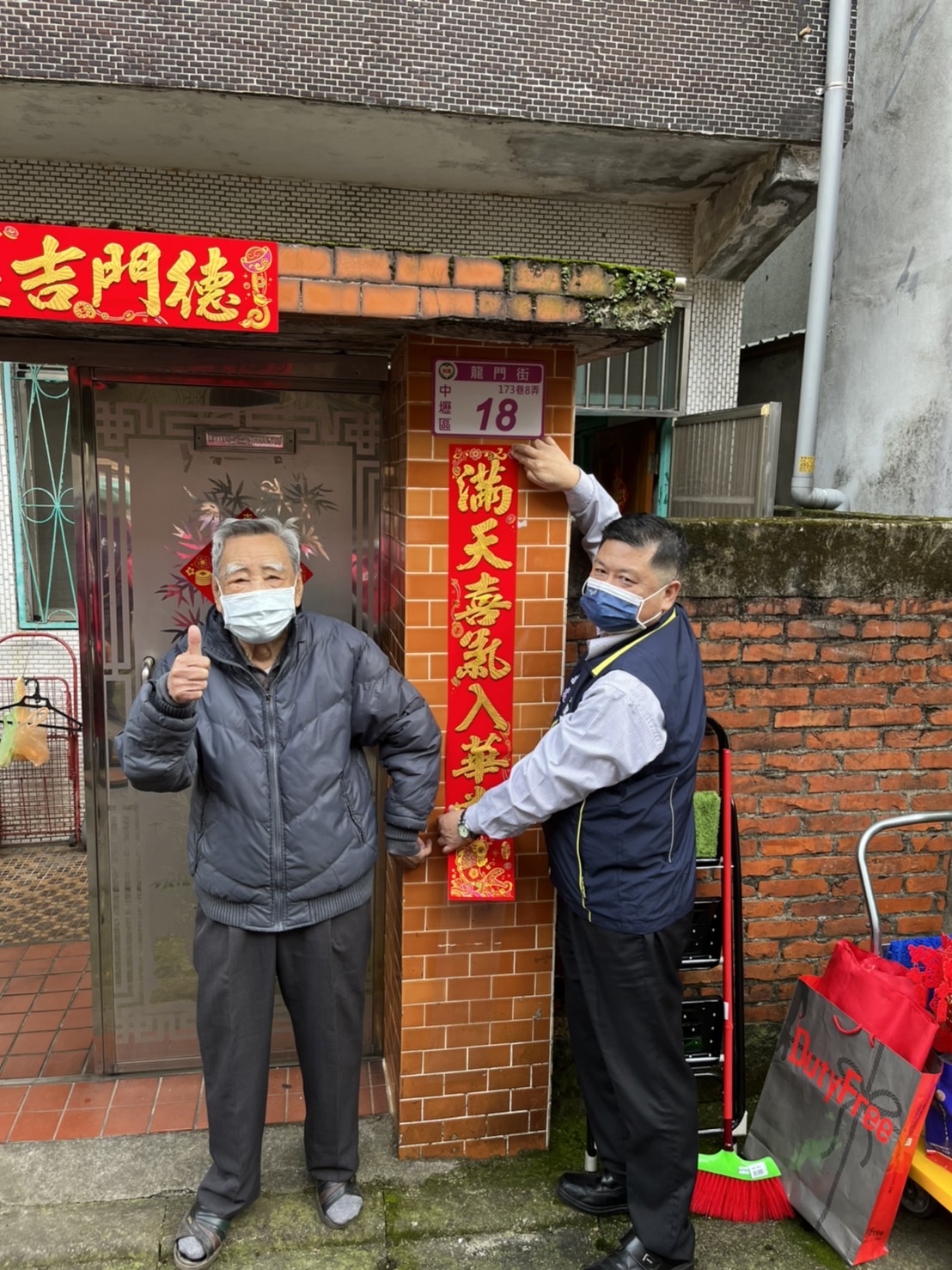 立春悄然將至,新的農曆新年即將到來。本處為感念榮民為國家的奉獻並落實照顧服務榮民眷之宗旨,1月20日由許清池副處長率領榮欣志工中壢一隊及替代役,趁著年前至獨居榮民汪伯伯家清潔打掃、張貼春聯,讓汪家煥然一新、新春喜氣連連,陪伴度過快樂的春節時光。 獨居中壢區龍岡里的汪伯伯已高齡95歲,經濟來源仰賴退休俸,本處協助其申請中低老人生活津貼、清寒榮民三節慰問金、長照服務及居家無障礙環境改善。汪伯伯平日生活主要由榮服處石輔導員、社區服務組長張組長及榮欣志工訪視照顧。年節將至,為防範Covid-19疫情,本處榮欣志工中壢一隊主動協助汪伯伯居家環境大掃除及消毒。志工及替代役們挽起衣袖、收拾住家周邊垃圾,並張貼春聯、斗方等佈置,讓汪伯伯相當感動及開心,臉上充滿著燦爛笑容,場面溫馨愉快。 徐偉光處長表示,照顧退伍袍澤是榮服處的責任,尤其是獨居榮民(眷)長輩更需要關懷陪伴,這次在春節前夕,榮欣志工主動協助獨居榮民長輩環境整潔,彰顯志工無私的奉獻及熱心公益的情操,是志願服務最佳的典範,也讓為國家犧牲奉獻的袍澤長輩,感受輔導會及榮服處的關懷與愛心,新年將至,也祝福大家和氣吉祥新氣象,四季平安過新年。