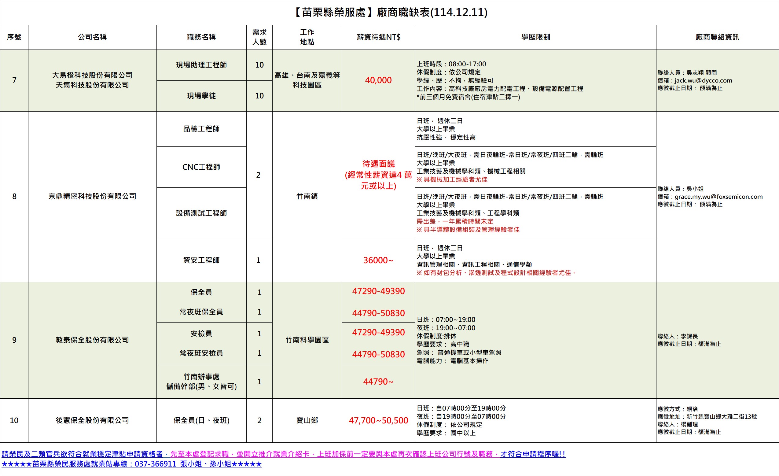 | 苗栗縣榮服處 廠商職缺表 1141211.pdf | 114-12-11 | 7 |