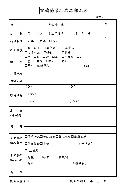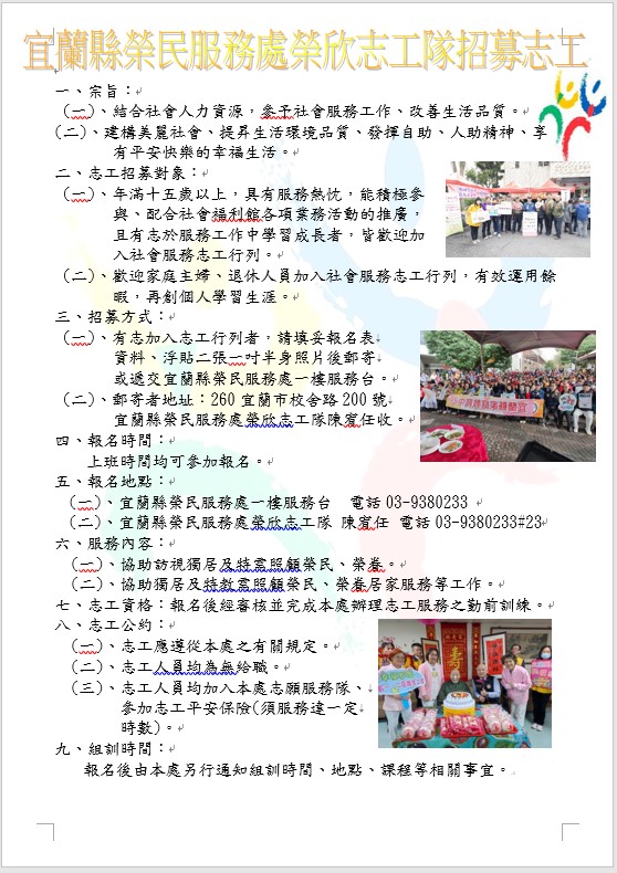 宜蘭縣榮民服務處榮欣志工隊 招募志工