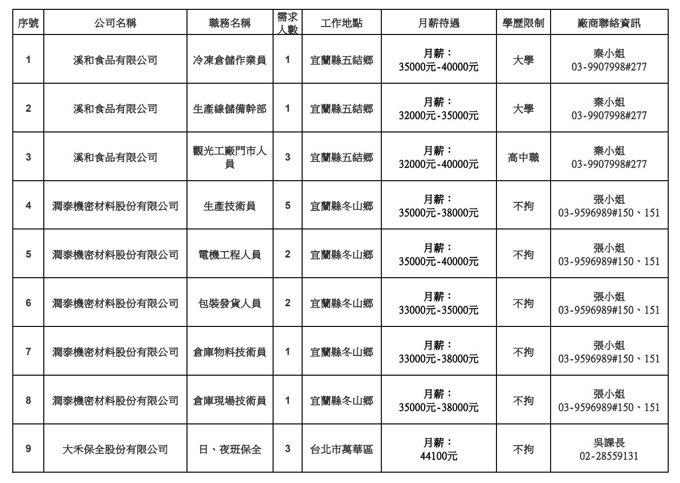 發布日期:114-12-24 資料來源:宜蘭縣榮民服務處 【宜蘭縣榮服處】廠商職缺表(114.12.29) 附件下載 檔案名稱 更新日期 下載次數 【宜蘭縣榮服處】廠商職缺表(114.12.29).pdf 114-12-24 1