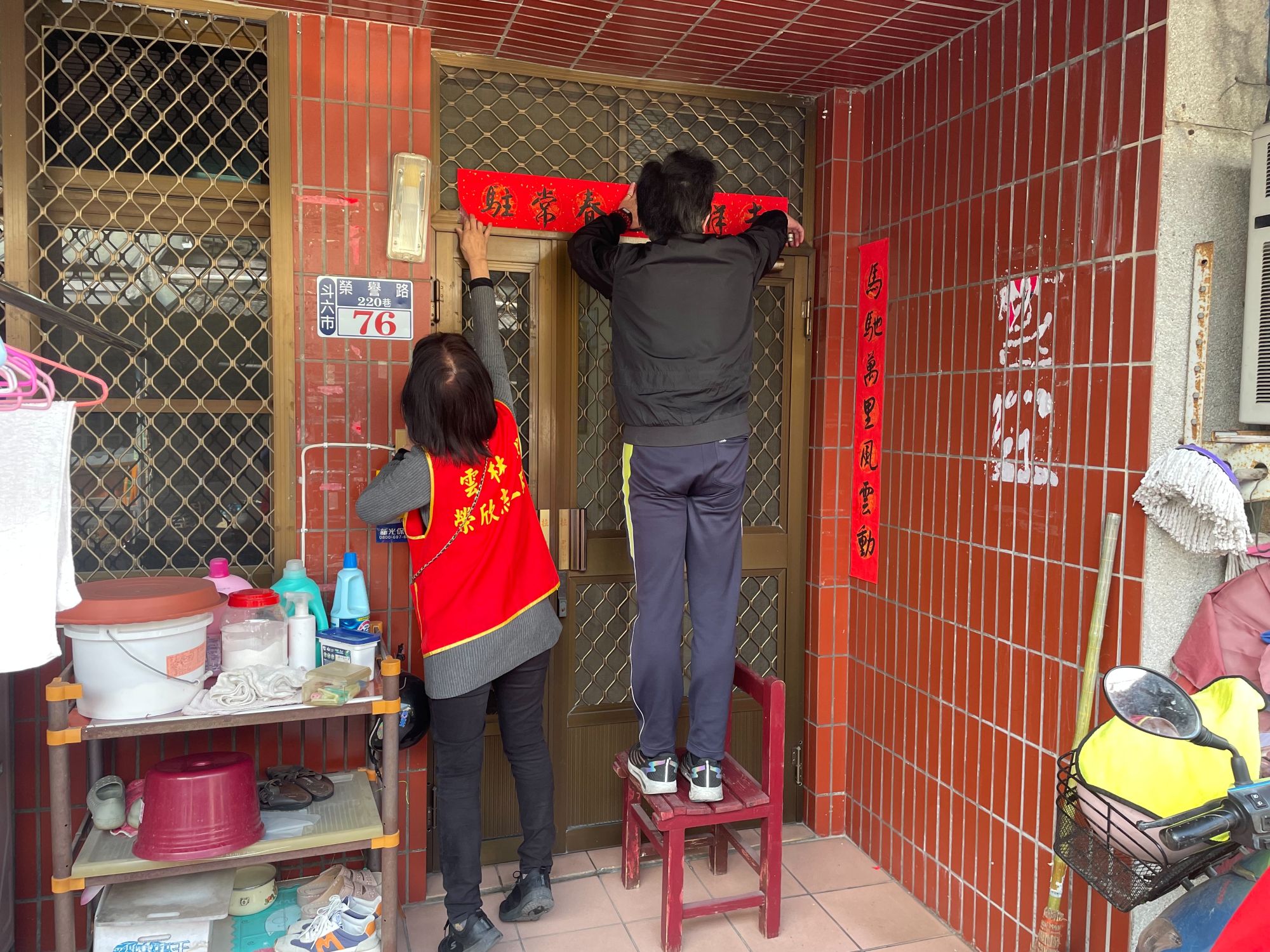 農曆新年將近,雲林縣榮民服務處持續關懷榮民遺眷生活所需,由蔡榮源副處長率領榮欣志工隊,日前前往斗六市為榮民遺眷王媽媽、林阿姨家中辦理除舊佈新、到府貼春聯感動服務。榮欣志工們分工合作,仔細打掃居家環境、整理雜物、擦拭門窗,並一一張貼春聯。志工們爬上爬下、不怕辛勞,只為讓遺眷住家煥然一新,處處洋溢喜氣與祝福。 雲林縣榮服處表示,榮服處始終秉持「視榮民眷如家人」的服務精神,透過到府關懷與實際行動,讓榮民遺眷在過年前感受到社會的溫暖與支持,也讓年節更有溫度。並歡迎有志投入公益服務雲林縣榮欣志工隊,有意願者請撥打05-5322742轉8019賈維忠輔導員。